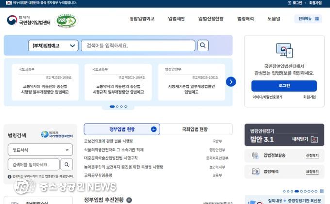 법제처는 9월 19일, 국민이 입법추진 현황 등 정부입법 관련 정보를 보다 쉽고 편리하게 확인할 수 있도록 기존 국민참여입법센터를 전면 개편하고, 정부입법지원센터를 ‘국민참여입법센터’로 통합하여 새롭게 서비스를 시작한다.