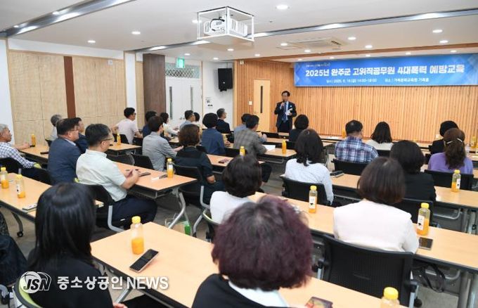19일 완주군은 완주가족문화교육원 가족홀에서 군수, 부군수, 국장, 부서장 등 고위직 공무원을 대상으로 4대폭력(성희롱‧성폭력‧성매매‧가정폭력) 예방교육을 진행했다.