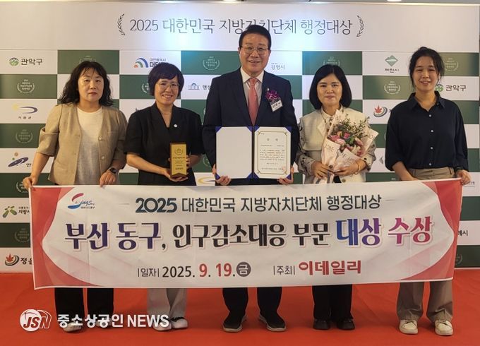 부산 동구가 9월 19일 서울 중구 KG타워 하모니홀에서 열린『2025 대한민국 지방자치단체 행정대상』시상식에서 인구감소대응부문 대상을 수상했다고 밝혔다.