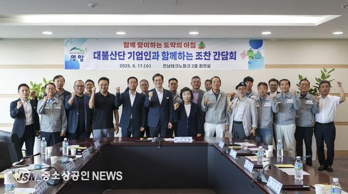 영암군이 17일 조선해양센터에서 ‘대불산단 기업인과 함께하는 조찬 간담회’를 열었다.