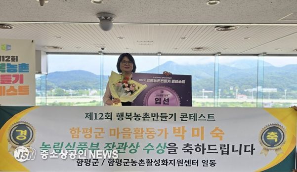 전남 함평군 마을활동가 박미숙 씨가 제12회 행복농촌만들기 콘테스트에서 우수주민(활동가) 부문 농림축산식품부 장관상을 수상하며 군민 자긍심을 높이고 있다.