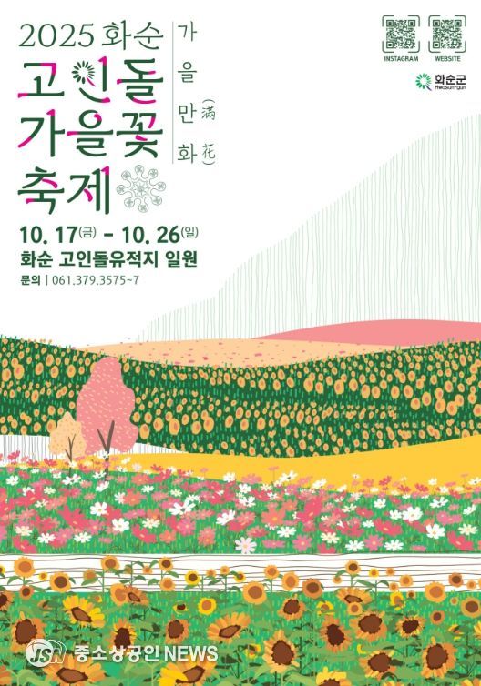화순군은 오는 10월 17일부터 26일까지 10일간 화순 고인돌 유적지 일원에서‘2025 화순 고인돌 가을꽃 축제’를 개최한다고 밝혔다.