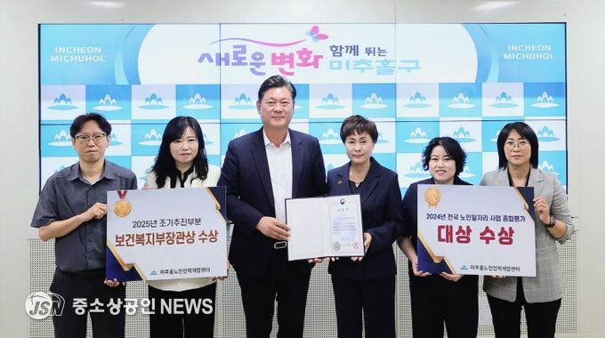 인천 미추홀노인인력개발센터(센터장 김태화)는 지난 22일 웨스턴조선서울에서 열린 ‘2025년 노인 일자리 주간 기념식’에서 보건복지부 장관 표창이자 최고 영예인 ‘대상’을 수상했다.