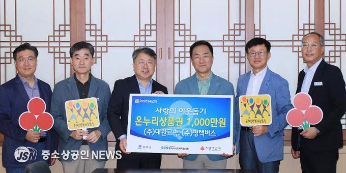 ㈜대원고속·㈜평택버스는 지난 17일 추석에 앞서 취약계층을 위해 평택행복나눔본부로 온누리상품권 1천만 원을 전달했다.