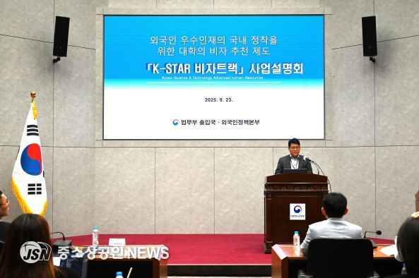법무부는 9월 23일 'K-STAR 비자트랙'제도의 이해를 돕기 위해 정부과천청사에서 관계부처와 27개 대학을 대상으로 사업설명회를 개최하고, 미래성장동력을 이끌 외국인 우수인재 유치 및 정착 지원을 위한 비자 운영 계획을 소개했다.