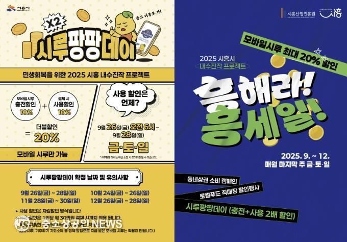 시흥시는 지난 달 말부터 지역화폐 모바일 시루를 최대 20% 할인하는 이벤트 ‘시루팡팡데이’를 추진 중이다. 사실상 시흥시의 2025년 하반기 상권 활성화 사업의 핵심인 이번 이벤트는 시흥시 지역화폐 모바일 시루를 충전 시 7~10%, 시루 가맹점에서 결제 시 추가로 7~10%할인 하는 것을 골자로 한다.