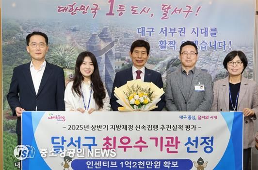 대구 달서구는 행정안전부 주관 ‘2025년 상반기 지방재정 신속집행 평가’에서 최우수기관으로 선정돼 특별교부세 1억 2천만 원을 확보했다.