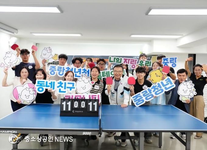이날 행사에는 동네친구 커뮤니티 참여자 12명 등 총 16명의 청년이 함께했다. 류경기 중랑구청장도 자리를 함께해 청년들과 직접 탁구 경기에 나서며 현장의 열기를 더했다.