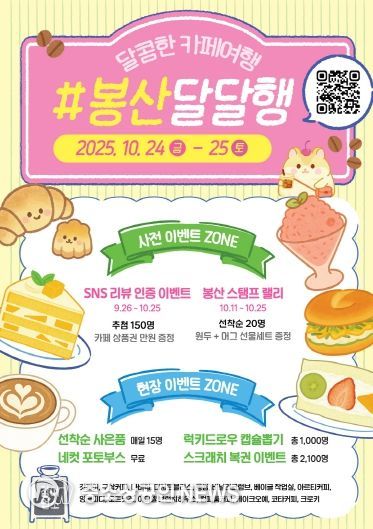 대구 중구는 골목 상권 활성화를 위해 9월 26일부터 10월 25일까지 한 달간 사전 이벤트 ‘SNS 리뷰 인증 이벤트’를 시작으로 ‘2025년 달콤한 카페 여행, #봉산달달행’을 본격 추진한다.