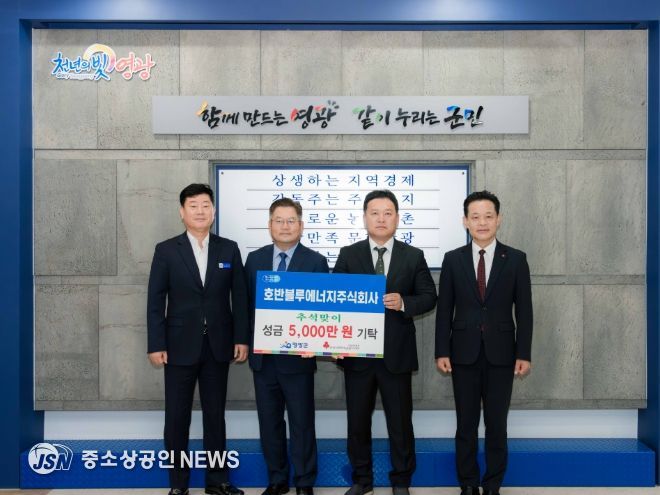 정맹화 호반블루에너지 대표는 “영광에 둥지를 틀고 성장해 가는 기업으로서 지역민과 함께 상생하며 나누는 기업이 되고자 성금을 마련했다”라며 “이번 나눔이 어려운 이웃들의 마음에 작은 위로가 되길 바란다”라고 말했다.
