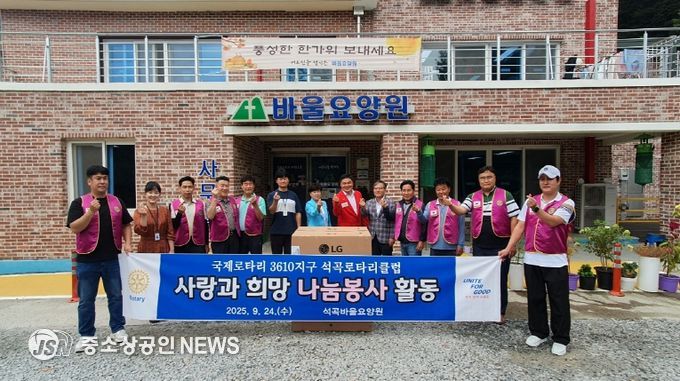 곡성군은 국제로타리 3610지구 석곡로타리클럽(회장 양해영) 회원들이 지난 9월 24일, 석곡면 소재 노인복지시설 바울요양원을 방문해 150만 원 상당의 세탁용 건조기 1대를 전달했다고 밝혔다.