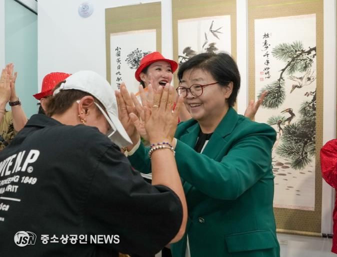 이순희 서울 강북구청장이 24일 강북문화예술회관 강북진달래홀에서 열린 ‘2025 자치회관 프로그램 발표회 및 작품 전시회’에 참석해 주민들과 소통하며 성과를 축하했다.