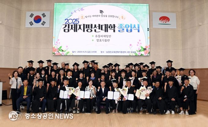 김제시는 지난 25일 농업인교육문화지원센터에서 '2025학년도 김제시지평선대학 졸업식'을 80여명이 참여한 가운데 개최했다고 밝혔다