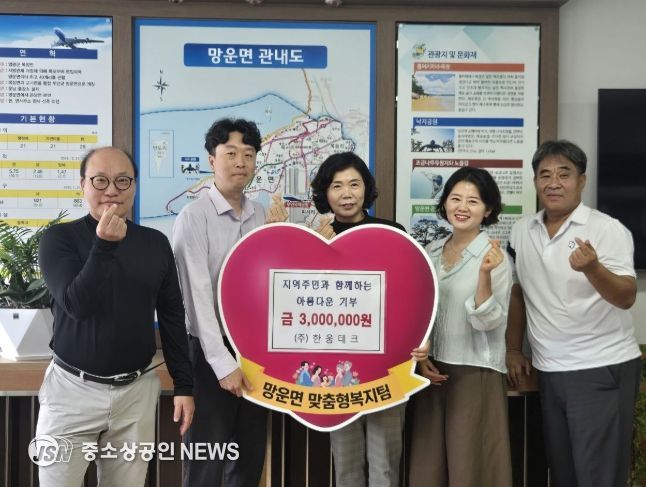 무안군 망운면은 지난 25일, ㈜한웅테크가 지역의 사회적 약자와 어려운 이웃을 위해 사용해 달라며 이웃사랑 성금 300만 원을 기탁했다고 밝혔다.