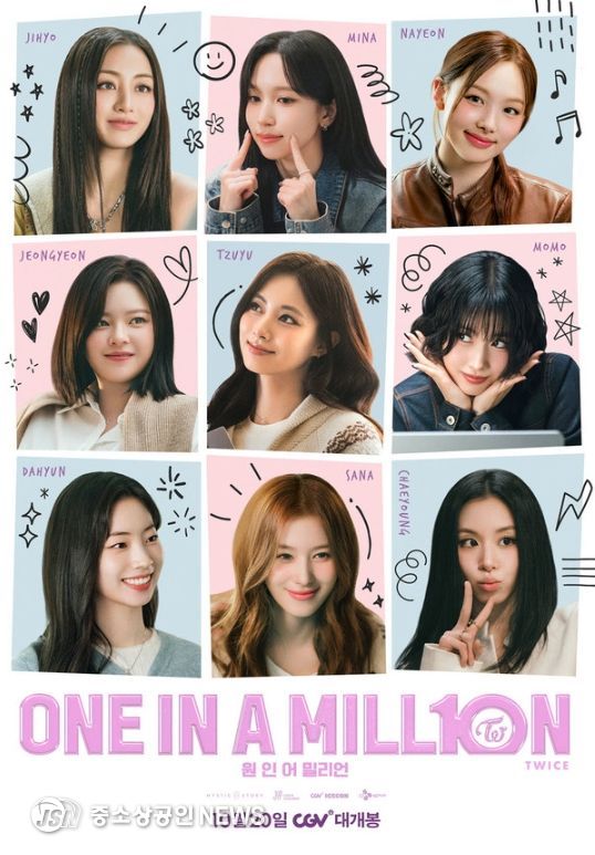 트와이스 데뷔 10주년을 기념하는 히스토리 무비 <원 인 어 밀리언(ONE IN A MILL10N)>이 9인 9색의 스페셜 포스터와 진심을 전하는 메인 예고편을 공개했다.[감독: 와사비마요ㅣ출연: 트와이스ㅣ제작: 미스틱스토리ㅣ배급: CJ CGV, CJ 4DPLEXㅣ장르: 다큐멘터리]