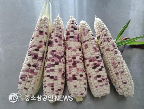 ‘얼룩찰1호’는 흰색과 보라색이 혼합된 얼룩무늬 알갱이를 가진 찰옥수수로 독특한 외관과 시각적 기호성으로 소비자들의 주목을 받고 있다.