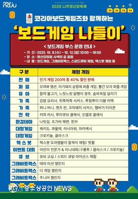 전라남도 나주시가 오는 10월 8일부터 12일까지 열리는 ‘2025 나주영산강축제’에서 남녀노소 누구나 즐길 수 있는 ‘보드게임 나들이’를 운영한다.