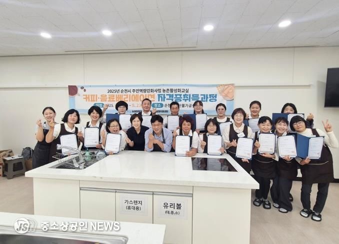 순천시는 농촌 주민들의 역량을 강화하고 소득 창출을 위해 추진한 ‘커피음료 베리에이션 자격증 취득 과정’을 지난 23일 마무리했다고 밝혔다.