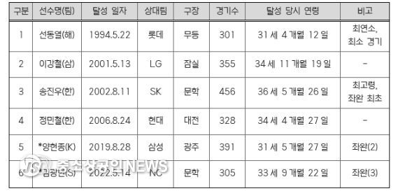 한화 류현진이 KBO 리그 최소 경기와 최고령 1,500탈삼진까지 10개를 남겨두고 있다.