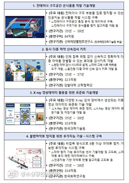 연구단 공모에는 총 24개 연합체(컨소시엄)가 지원하여 평균 경쟁률 6대 1을 기록했으며, 이는 관세행정 연구개발에 대한 산업계·학계·연구계의 높아진 관심과 기대를 보여주는 의미 있는 결과이다. 최종 선정된 4개 연구단은 세관 현장에서 즉시 활용 가능한 기술을 개발하고, 실증하는 역할을 하게 된다.