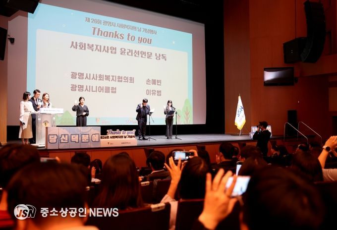 시는 26일 광명시민회관 대공연장에서 사회복지종사자, 자원봉사자, 사회복지담당 공무원 등 300여 명이 참석한 가운데 ‘제26회 광명시 사회복지의 날’ 기념행사를 개최했다.