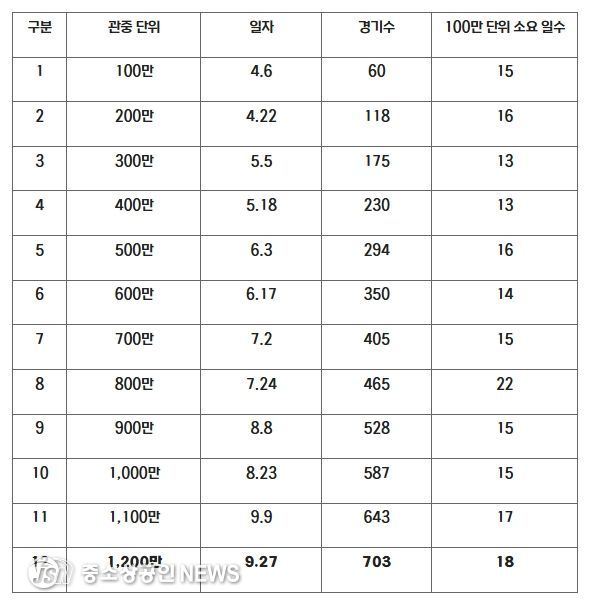2025 신한 SOL뱅크 KBO 리그가 1,200만 관중을 달성했다.