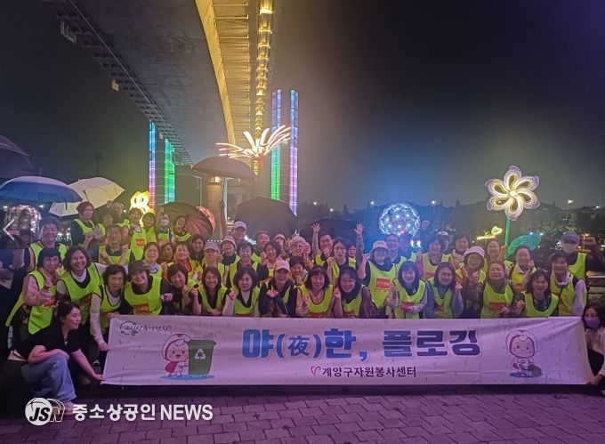 인천 계양구자원봉사센터는 지난 24일 저녁, ‘계양아라온 아트웨이(빛의 거리 3단계)’와 ‘가을꽃 국화축제’가 열리는 현장에서 자원봉사자 74명과 함께 ‘야(夜)한 플로깅’ 봉사활동을 진행했다.