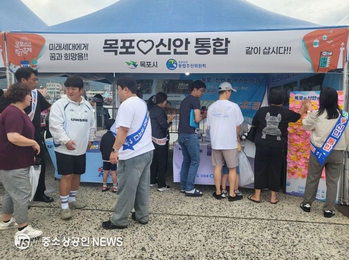 목포시와 목포신안통합추진위원회(통추위)는 지난 9월 26일부터 28일까지 열린 목포항구축제 기간 동안 ‘목포·신안 통합 홍보부스’를 운영하며, 지역 소멸 위기 극복과 지속 가능한 미래를 위한 통합 공감대 확산에 나섰다.