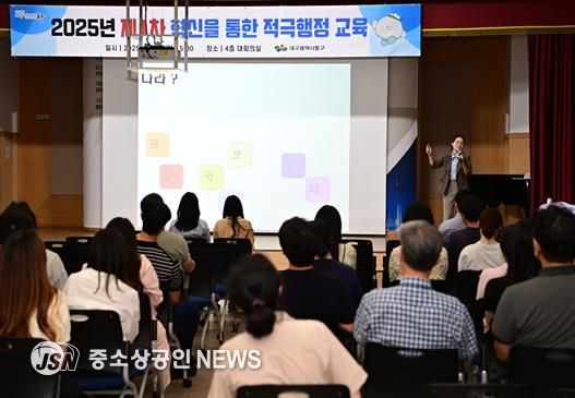대구 동구청은 지난 26일, 동구 소속 공무원과 (재)동구문화재단 직원 포함 80여 명을 대상으로 ‘제1차 혁신을 통한 적극행정 교육’을 실시했다.