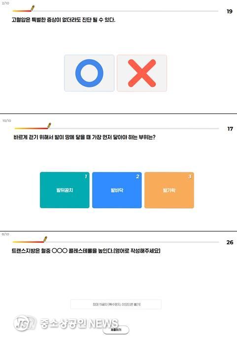 참가자들은 모바일과 PC로 퀴즈쇼 URL 링크에 접속하여 심뇌혈관질환 예방, 금연, 건강한 식습관, 바르게 걷기, 치아 관리 등 만성질환을 조기에 예방할 수 있는 다채로운 건강 퀴즈를 풀며 재미와 유익함을 동시에 경험했다.