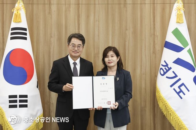 김동연 경기도지사는 30일 오전 경기도청에서 윤명희 신임 경기도서관장에 임명장을 수여했다.