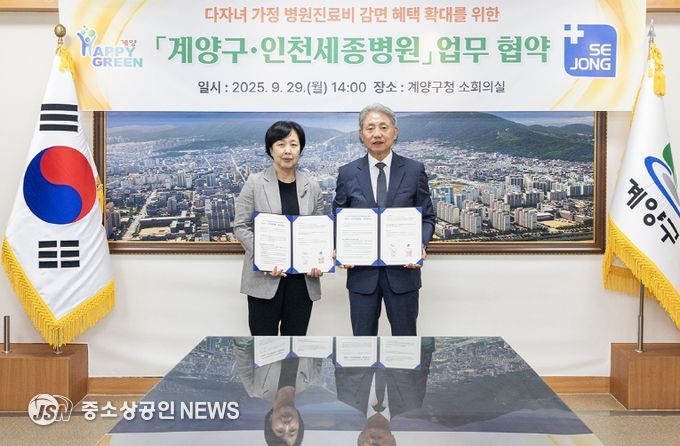 인천광역시 계양구는 9월 29일 인천세종병원(병원장 오병희)과 ‘다자녀 가정 병원진료비 감면 확대’를 위한 업무협약을 체결했다.