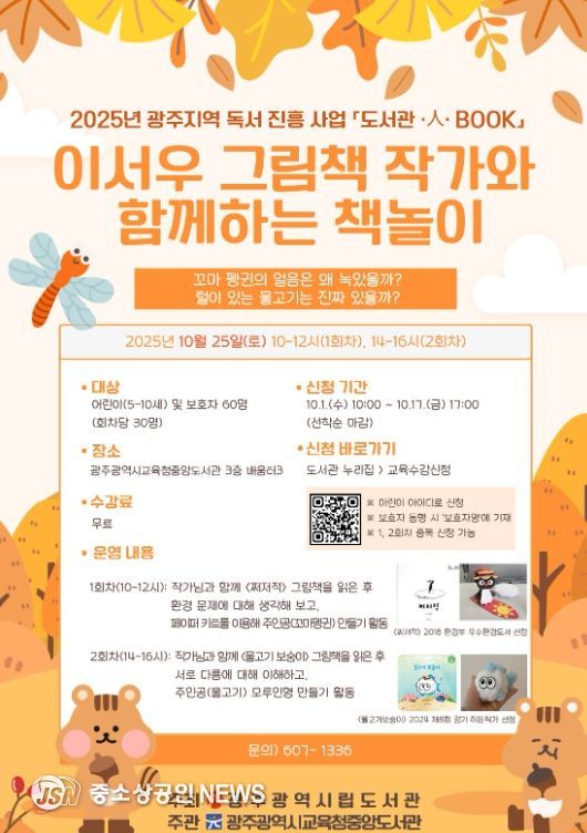 광주광역시교육청중앙도서관은 오는 10월 25일 본관 3층 배움터3에서 ‘이서우 그림책 작가와 함께하는 책놀이’ 프로그램을 운영한다.
