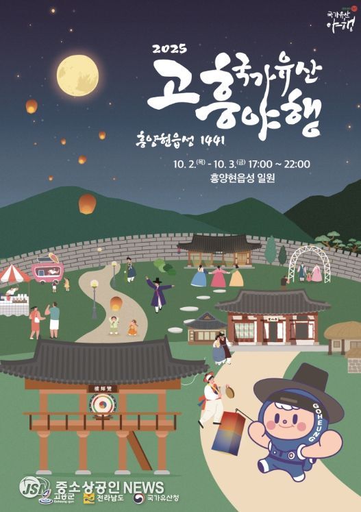 고흥군은 오는 10월 2일부터 3일까지 이틀간 고흥읍 존심당 역사문화공원(구 군청)에서 '2025년 고흥 국가유산 야행 ‘흥양현읍성 1441’'을 개최한다고 밝혔다.