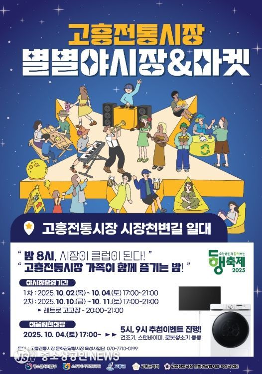 군 경제산업과 관계자는 “고흥전통시장은 단순한 장터를 넘어, 문화와 관광이 융합된 지역 대표 명소로 발전하고 있다”며 “이번 별별야시장을 통해 지역경제 활성화는 물론 군민과 관광객이 모두 함께 즐기고 소통하는 축제의 장을 만들겠다”고 말했다.
