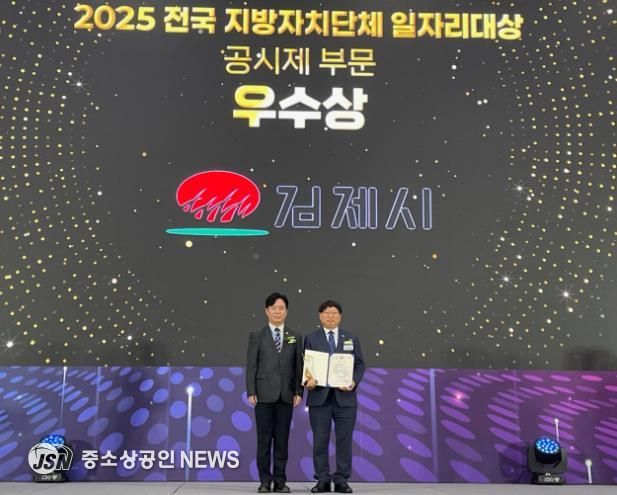 김제시는 30일 청주 오스코에서 열린 '2025년 전국 지방자치단체 일자리대상'시상식에서 공시제 부문 우수상을 수상하며 고용노동부 장관 표창과 함께 인센티브 사업비 5백만원을 확보했다고 밝혔다.