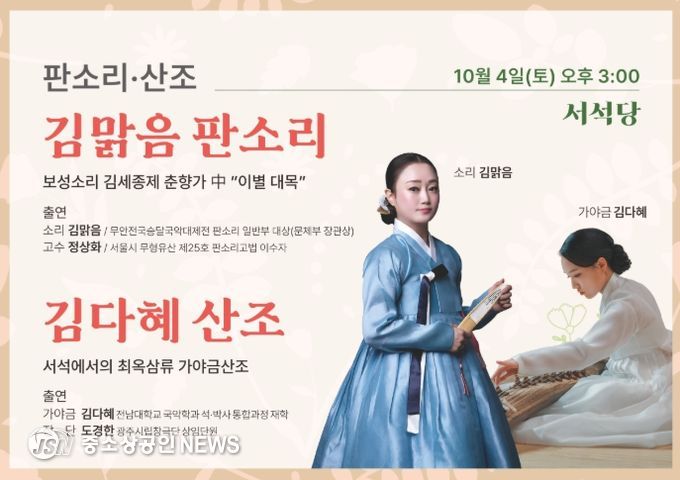 광주문화재단 전통문화관은 오는 10월 4일 오후 3시, 제21회차 토요상설공연을 선보인다.