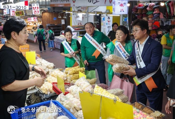대전 대덕구는 1일 신탄진·중리·법동 전통시장에서 ‘2025 추석맞이 전통시장 장보기’ 행사를 열고 상인 격려와 장보기 캠페인을 펼쳤다고 밝혔다.