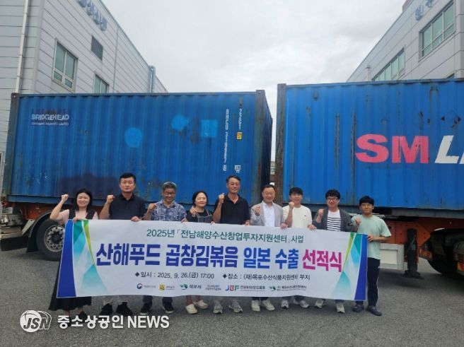 (재)목포수산식품지원센터는 9월 26일, 전남해양수산창업투자지원센터 사업 수혜기업인 산해푸드(대표 오시윤)가 일본 바이어와 체결한 2만3천 달러(한화 약 3천2백만 원) 규모의 곱창김 제품 수출 계약에 따라 센터에서 선적식을 개최했다고 밝혔다.