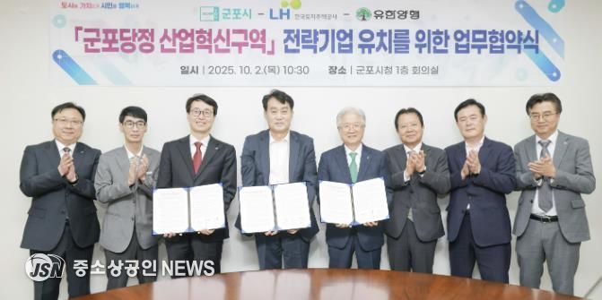 군포시는 2일 군포시청에서 한국토지주택공사(LH), ㈜유한양행과 ‘군포당정 산업혁신구역’ R·D 전략기업 유치를 위한 업무협약을 체결했다고 밝혔다.