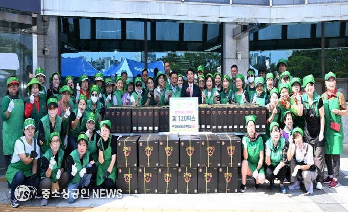 구리시 새마을부녀회는 지난 2일 구리시청 민원 광장에서 소외되고 어려운 이웃들이 따뜻한 명절을 보낼 수 있도록 ‘함께해요. 새마을, 행복한 추석 김 전달 행사’를 개최했다고 밝혔다.
