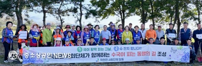 작천면이 지난 1일 면내 사회단체와 함께 주민들이 직접 주인공이 되어 마을을 가꾸는 참여형 공동체 사업인 ‘수국이 피는 동행의 길’을 조성했다.