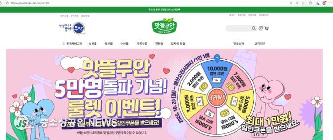 10월 20일부터 시작되는 룰렛 이벤트는 ‘맛뜰무안몰’ 회원 누구나 참여할 수 있으며, 룰렛을 돌려 최대 1만원의 할인쿠폰을 무작위로 제공한다.