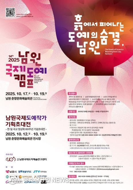 최경식 남원시장은 “제14회 국제도예캠프는 남원의 우수한 도자문화를 세계와 공유하고 도자산업 발전의 기틀을 다지는 중요한 계기”라며 “남원의 가을 대표 축제들과 함께 더욱 다채로운 문화의 향연을 즐기시길 바란다”고 전했다.