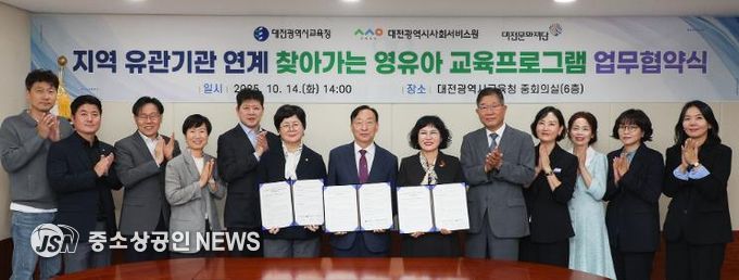 대전시교육청은 10월 14일 대전광역시사회서비스원 및 대전문화재단과'지역 유관기관 연계 찾아가는 영유아 교육프로그램'운영 업무협약을 체결했다고 밝혔다.
