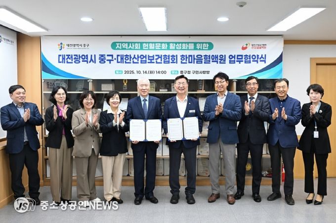 대전 중구는 14일 지역사회 헌혈문화 활성화를 위해 대한산업보건협회 한마음혈액원(협회장 백헌기)과 업무협약을 체결했다고 밝혔다.