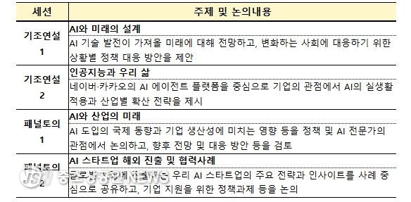 이어진 토론 세션에서는 국내외 전문가들이 패널로 참여해 ➊AI로 인한 산업 구조 전환과 정책 과제, ➋AI 스타트업의 글로벌 시장 진출 전략과 정책 과제에 대한 민관 전문가의 경험을 공유하고 대응방향을 논의했다.