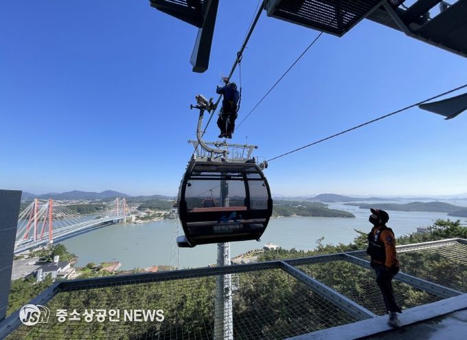 가을여행주간을 맞이하여 전남도로 많은 가족단위 여행객들이 방문이 많아지면서 안전에 대한 관심이 높아지고 있는 가운데 명량해상케이블카는 지난 10월 20일 비상상황 대응 능력을 강화하기 위해 진도소방서와 함께 케이블카 합동 구조훈련을 실시했다.