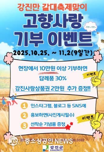 방문객에 대해 SNS 이벤트와 당일 현장기부자에게 강진사랑상품권 지급 등 풍성한 혜택의 행사로 관람객의 이목을 끌 예정이다.