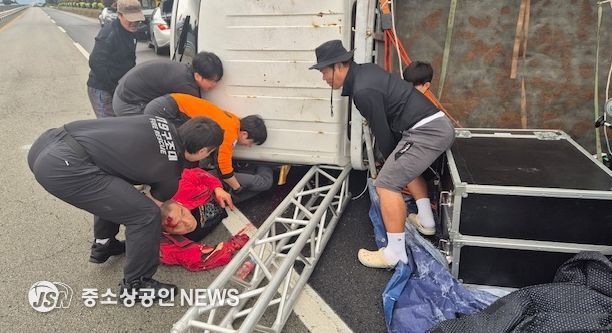 비번 활동중인 소방관들이 도로에서 전복된 포터차량을 발견, 신속한 구조활동으로 시민의 생명을 구해 화제가 되고 있다.